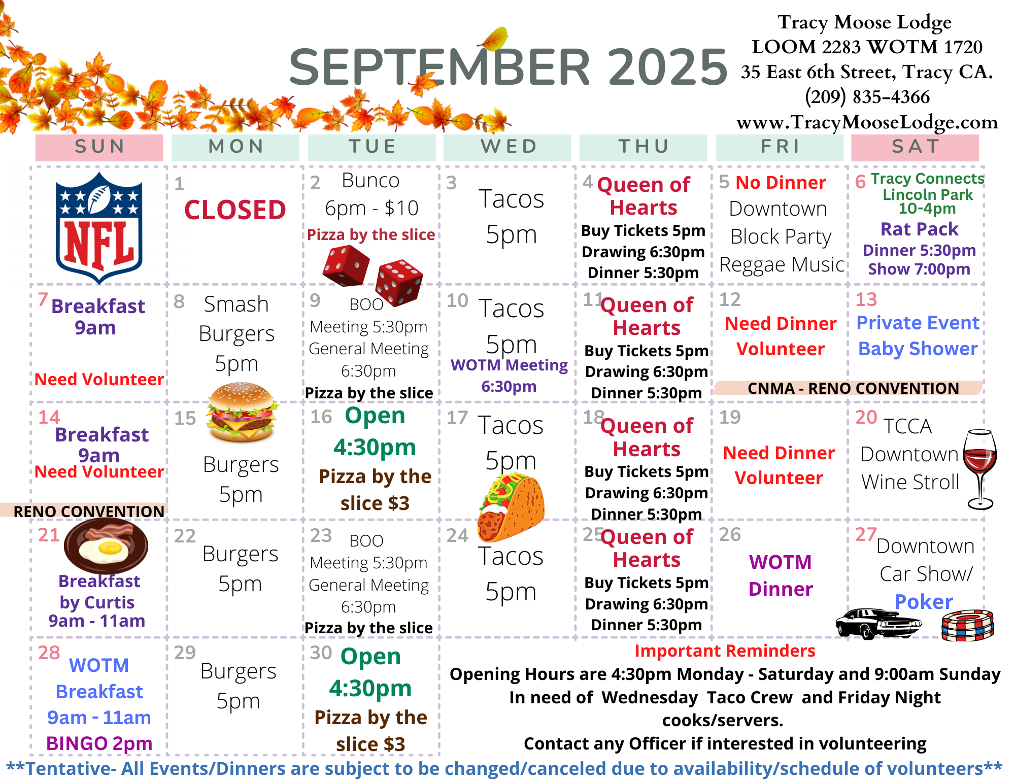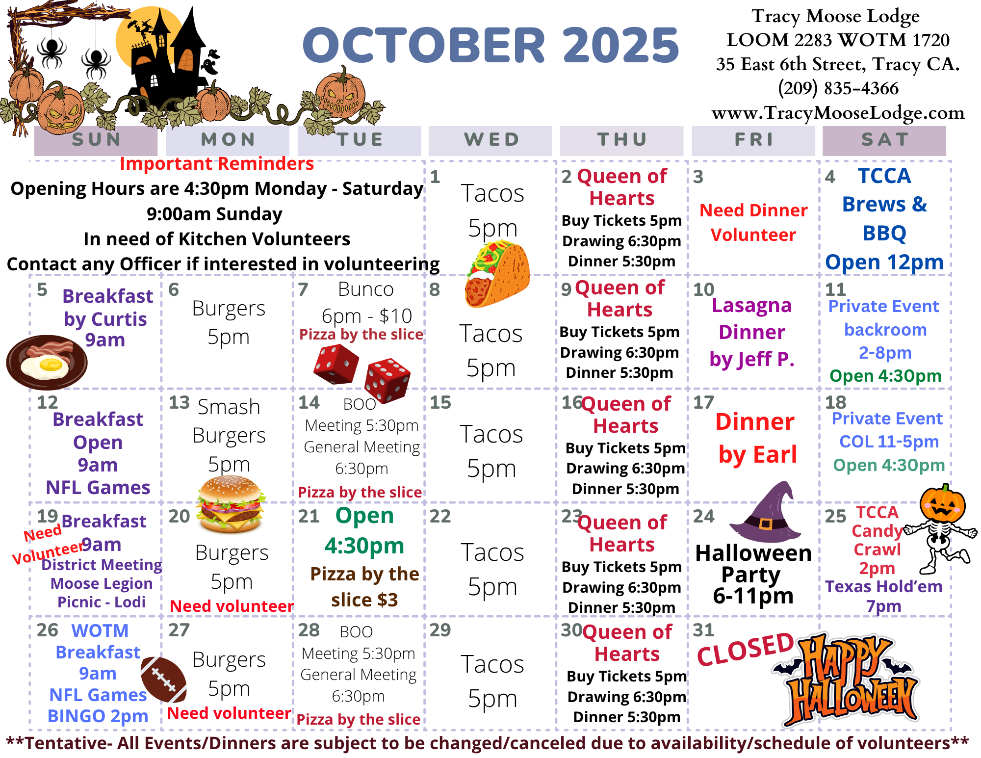 The Tracy Moose Legion and Women of the Moose will host a Special Taco Night on the 2nd Wednesday of every Month!!